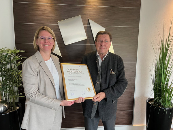 Fünf Jahrzehnte später konnte Hubert Steinberg jetzt in der Geschäftsstelle Beckum der Kreishandwerkerschaft Steinfurt Warendorf aus den Händen von Ann-Kristin Erdmann seinen Goldenen Meisterbrief entgegennehmen. „Er ist Zeichen für echte Meisterschaft im Handwerk“, gratulierte die Leiterin des Innungsservice dem Jubilar und dankte ihm für die Verbundenheit zum Handwerk und zu seinem Gewerk. Die nämlich besteht beim Schlossermeister immer noch. „Meinen Amboss habe ich noch im Keller stehen“, schmunzelt Steinberg im Gespräch mit Ann-Kristin Erdmann und nennt zahlreiche mitunter wohlbekannte Orte in näherer und weiterer Umgebung, an denen heute noch Arbeiten aus seinen Händen zu finden und zu bestaunen sind.