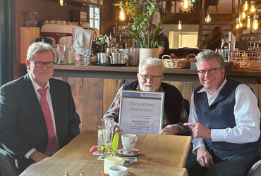 Im kleinen Kreis aus Familie, Freunden, Nachbarn und Weggefährten erhielt Manfred Graupe seinen Diamanten Meisterbrief aus den Händen von Ehrenobermeister Heinz Nienkemper.